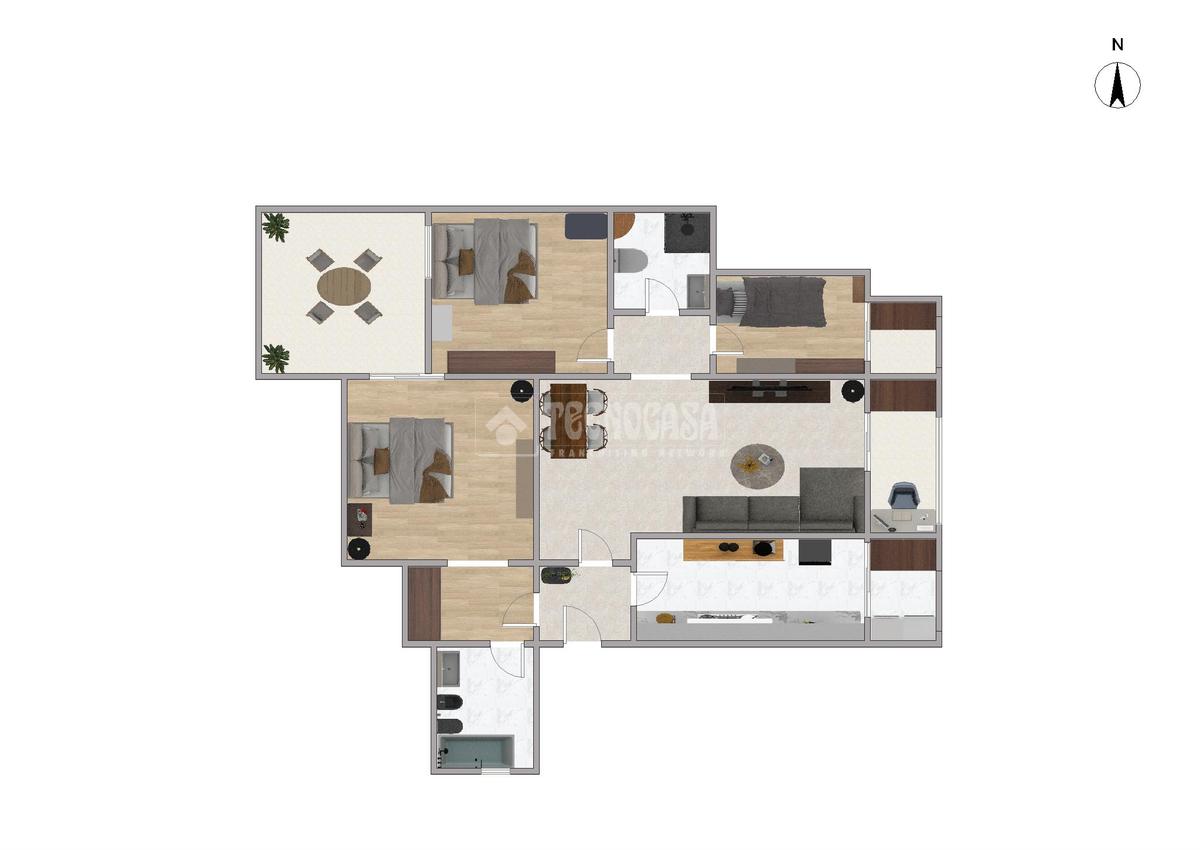 La cocina es independiente y cuenta con lavadero, un espacio práctico para el día a día. Además, dispone de un patio interior y dos balcones acristalados que aportan versatilidad y luz durante todo el año.