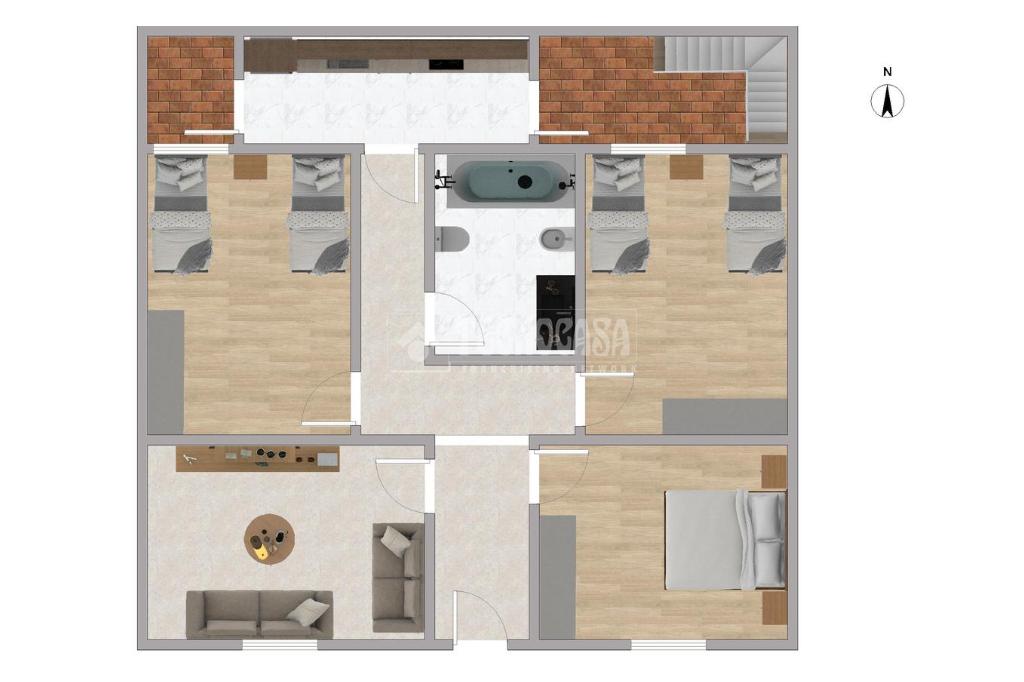 La planta superior ofrece una terraza, ideal para disfrutar del aire libre, además de un trastero que aporta un plus de almacenamiento.