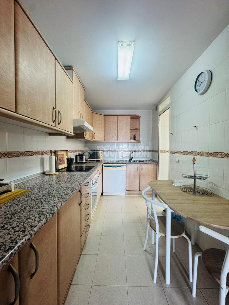 Dispone de cocina independiente, bien diferenciada del resto de estancias, con lavadero, lo que aporta un extra de comodidad y espacio de almacenamiento. Baño completo, en buen estado y de fácil mantenimiento.